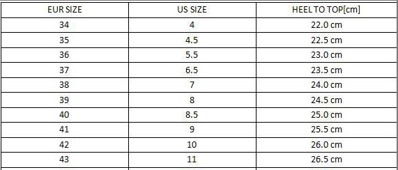- Please refer to the chart above to make a decision about the correct size based on your foot length.